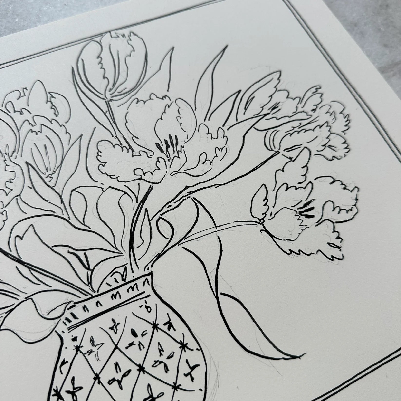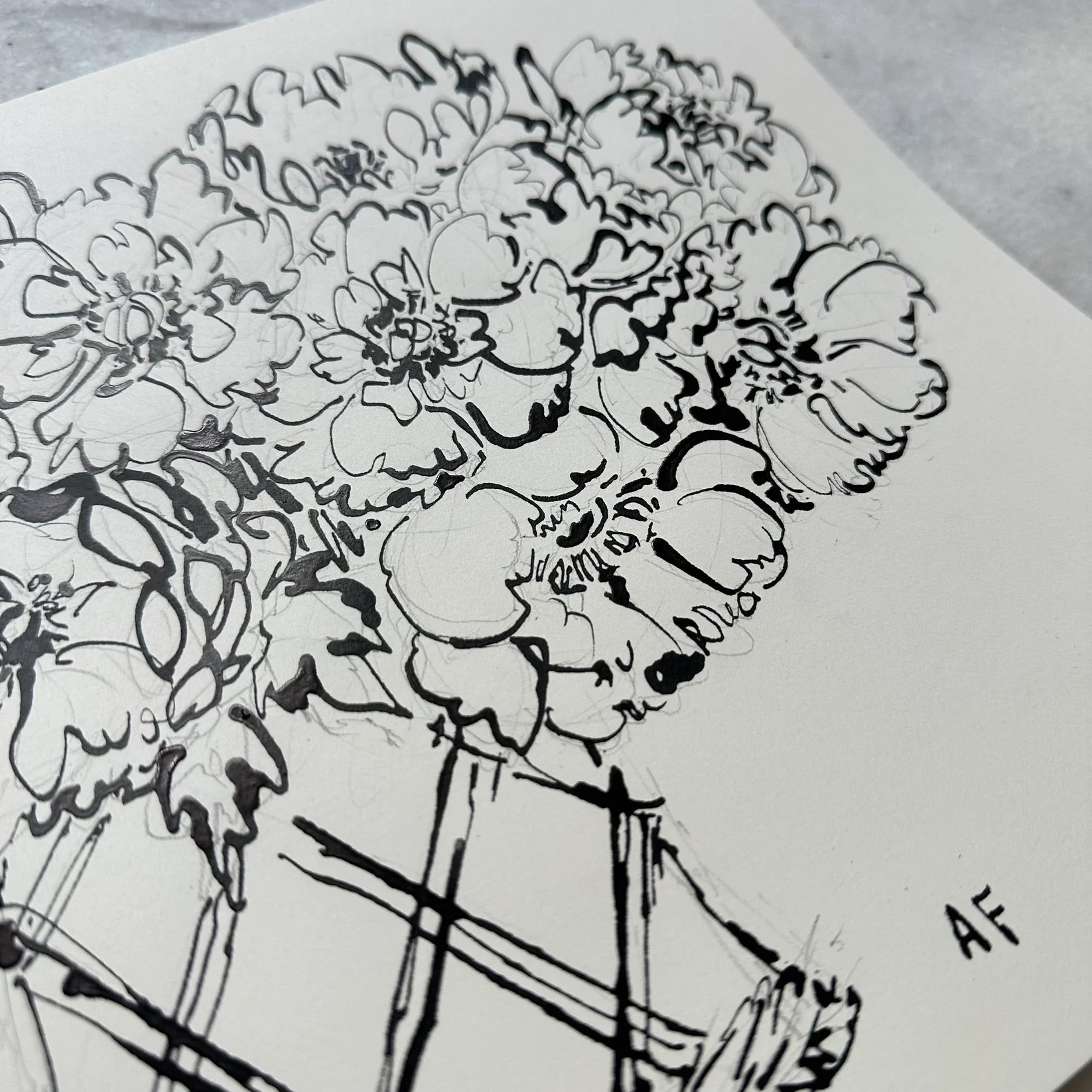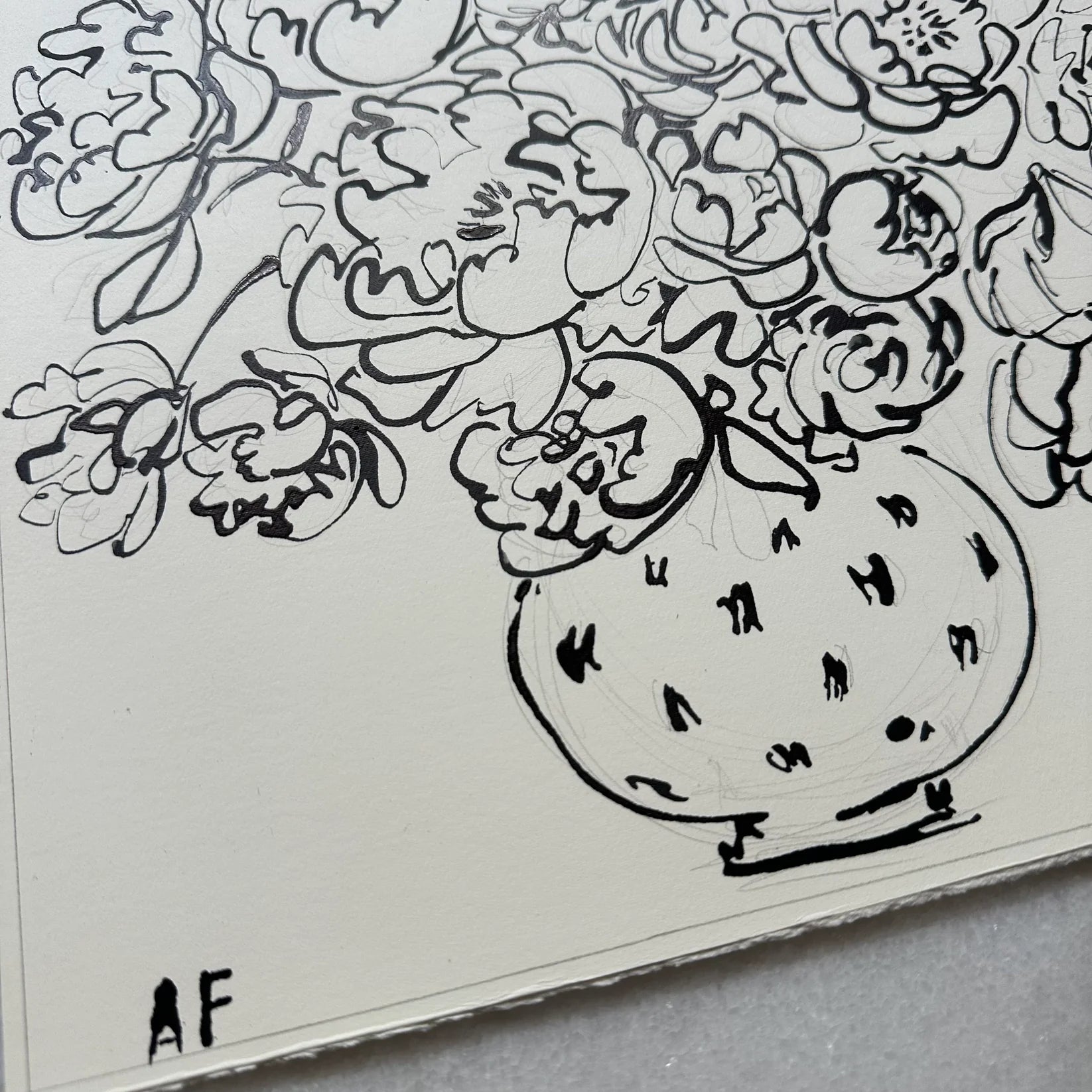 India Ink Peonies by Aislinn Forbes
