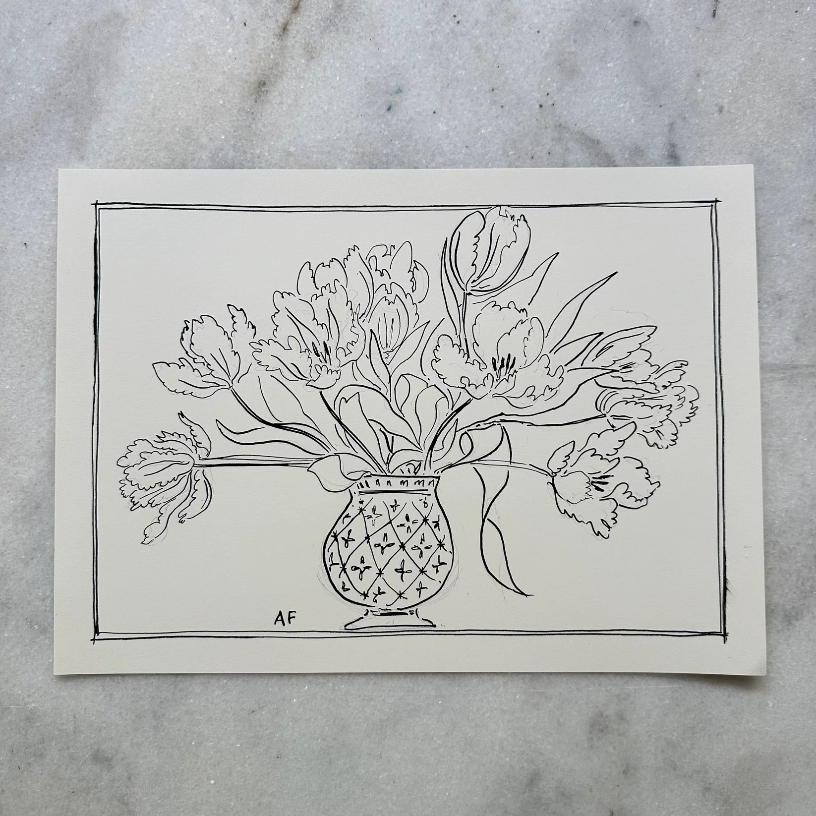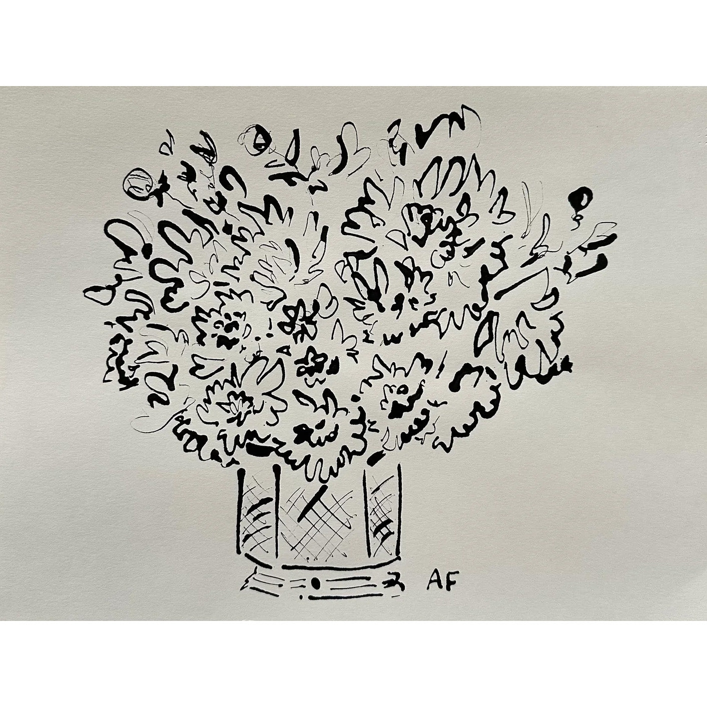 India Ink Dahlias in Vase by Aislinn Forbes