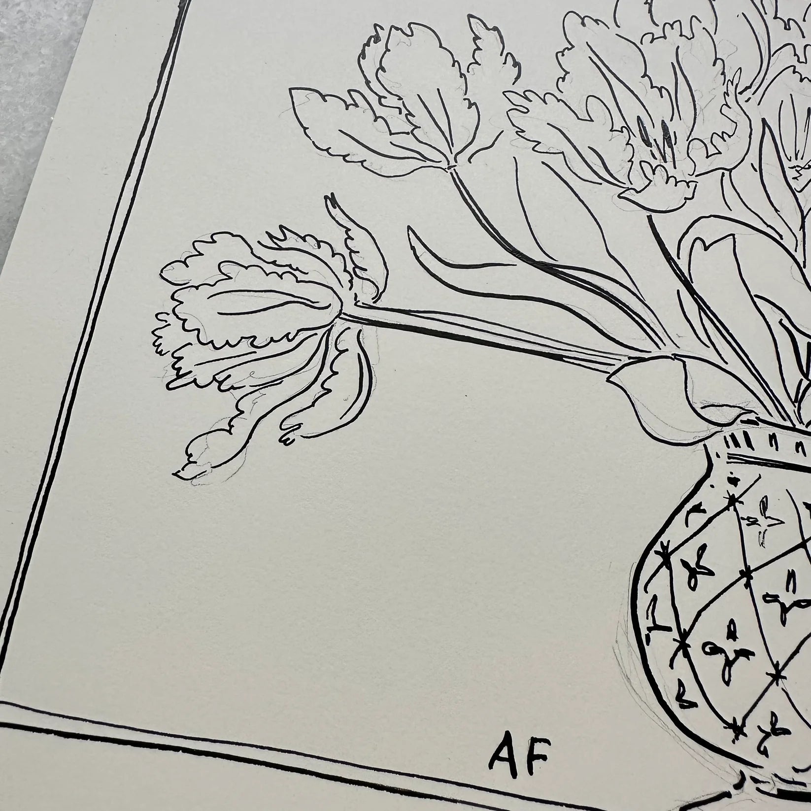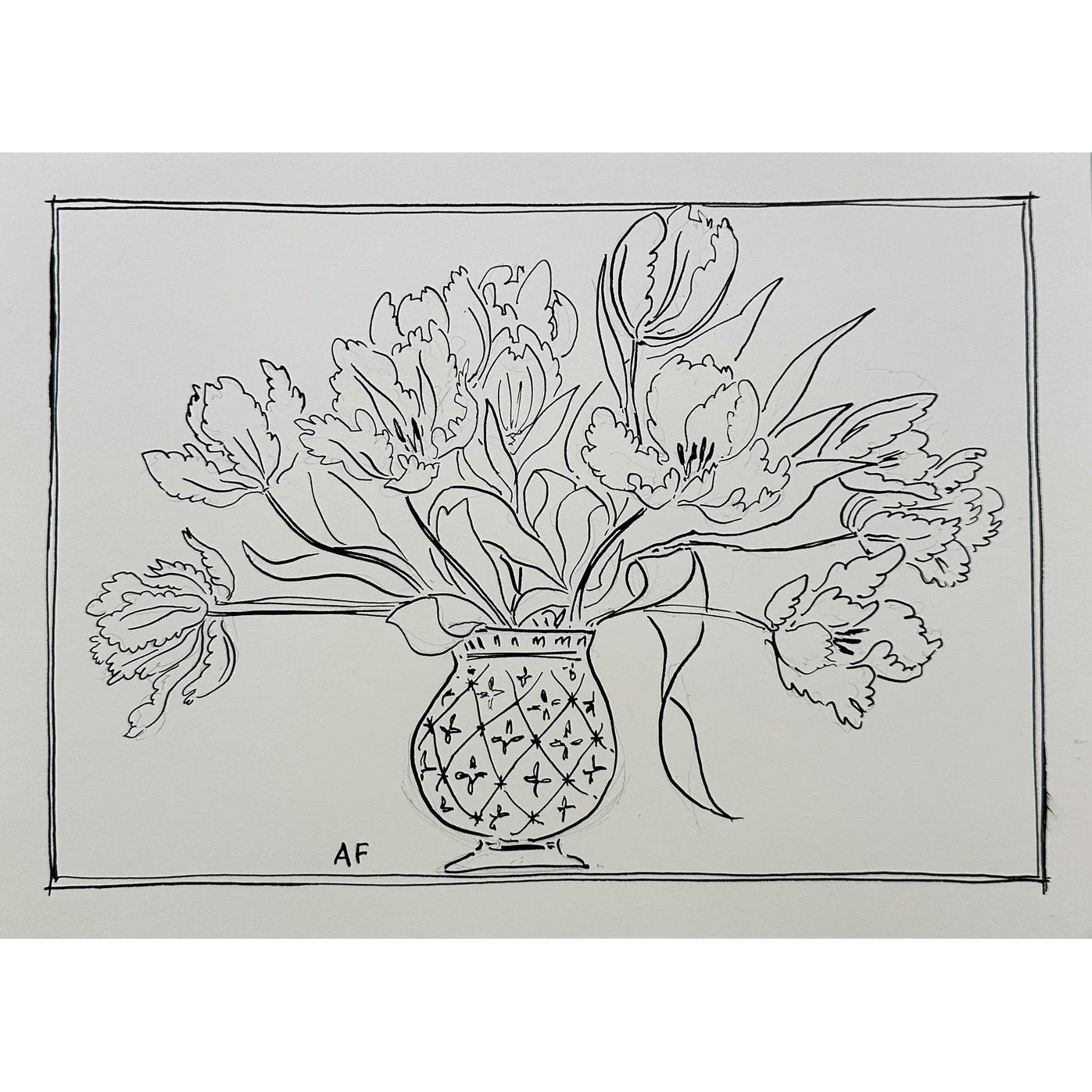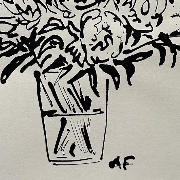 India Ink Anemones in Vase by Aislinn Forbes