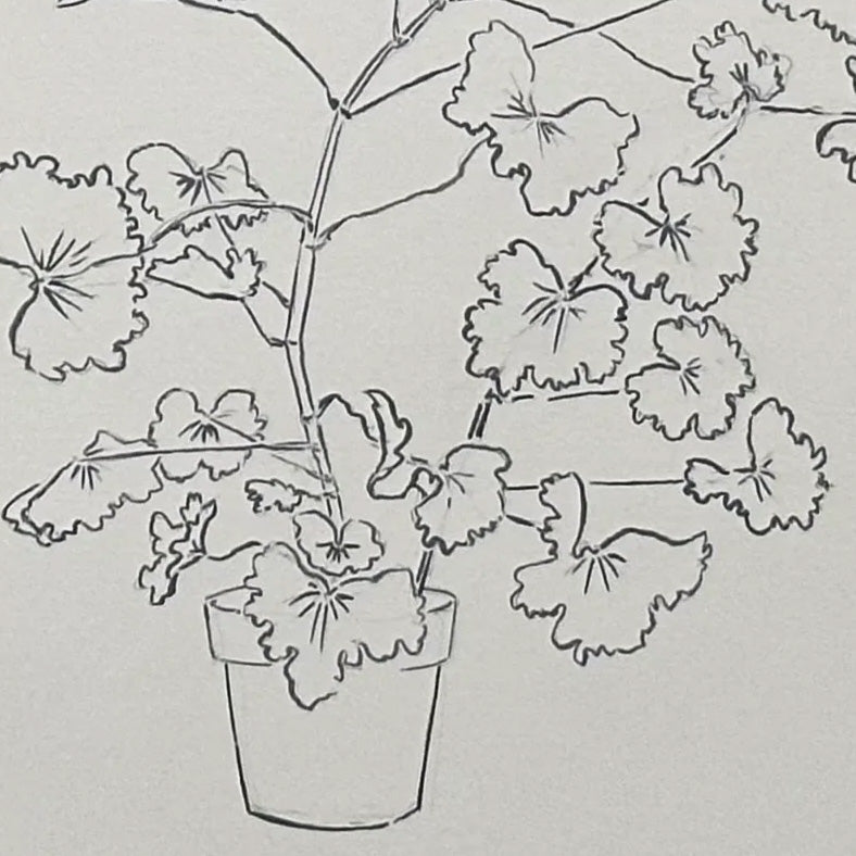 India Ink Geranium Still Life by Aislinn Forbes