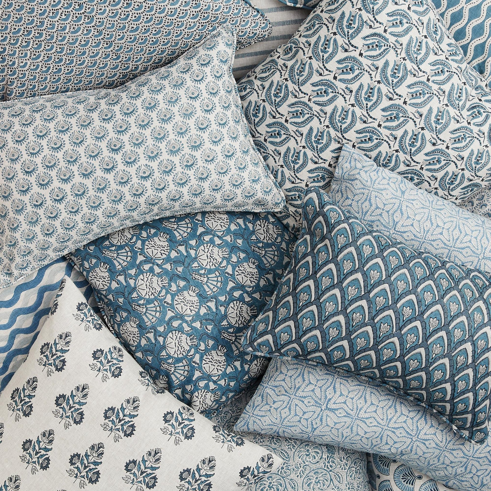 Tiger Flower Dark Blue Frill Lumbar Pillow