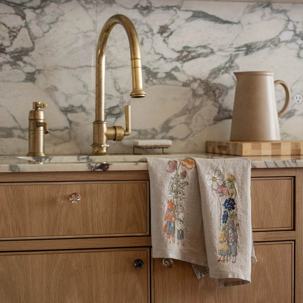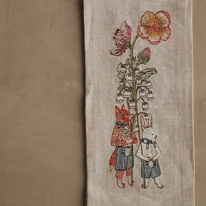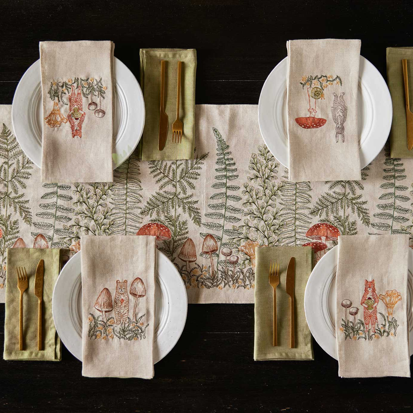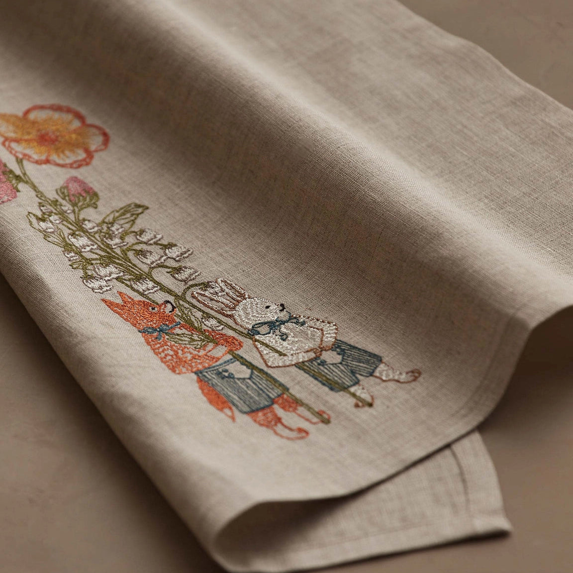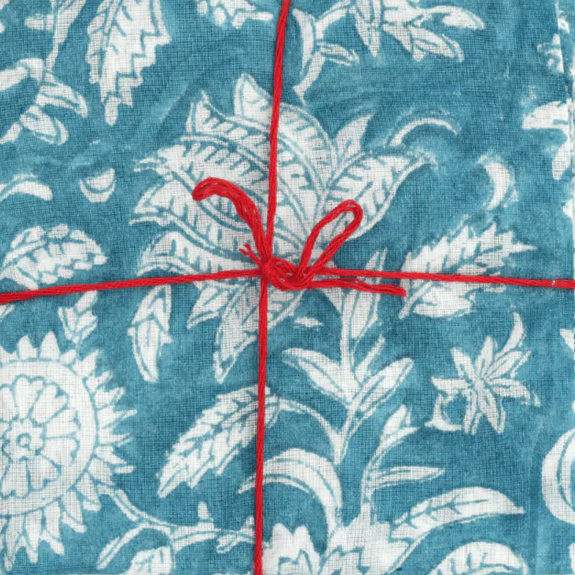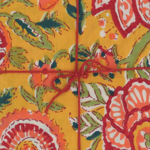 Ibisco Green Pink Cotton Tablecloth in Large Square