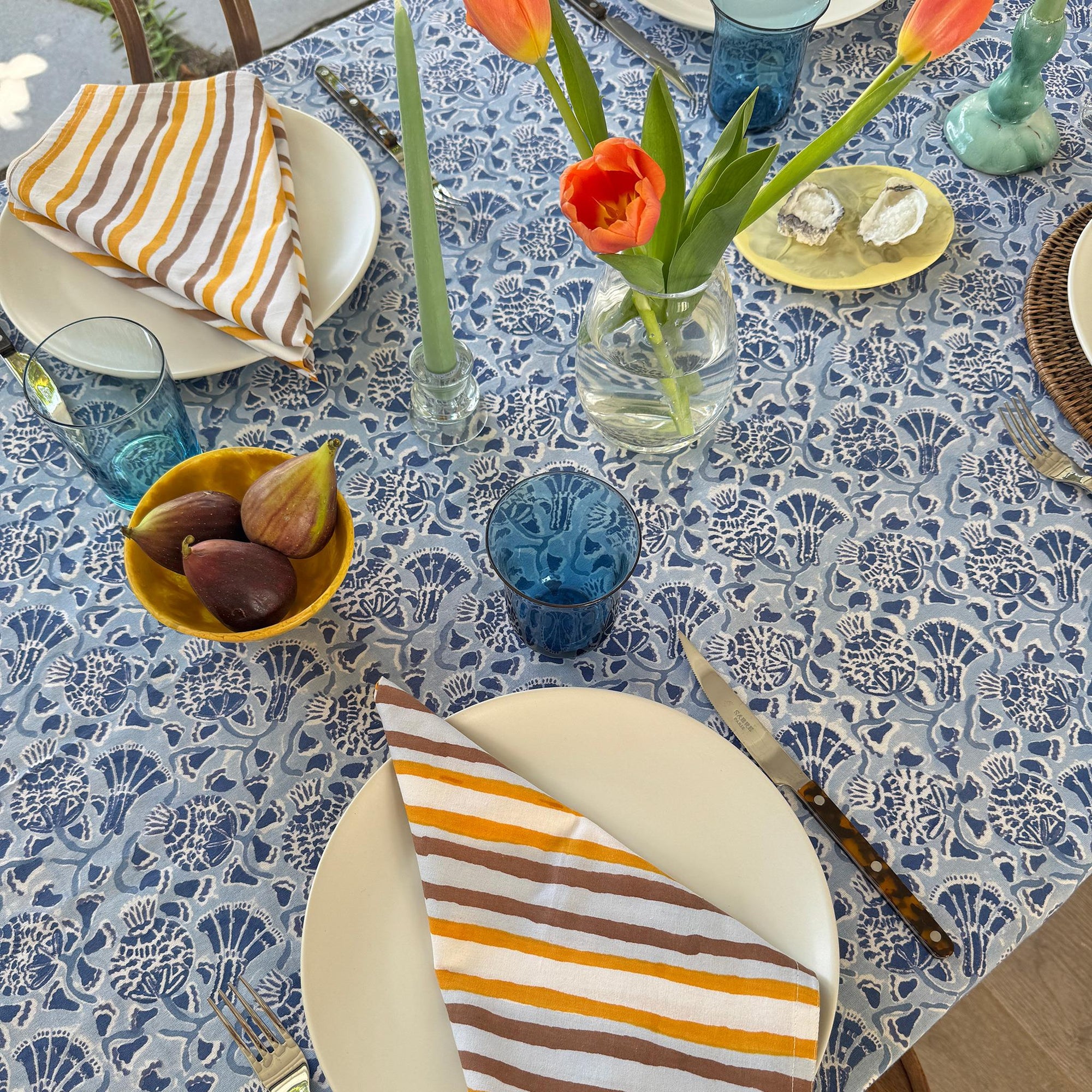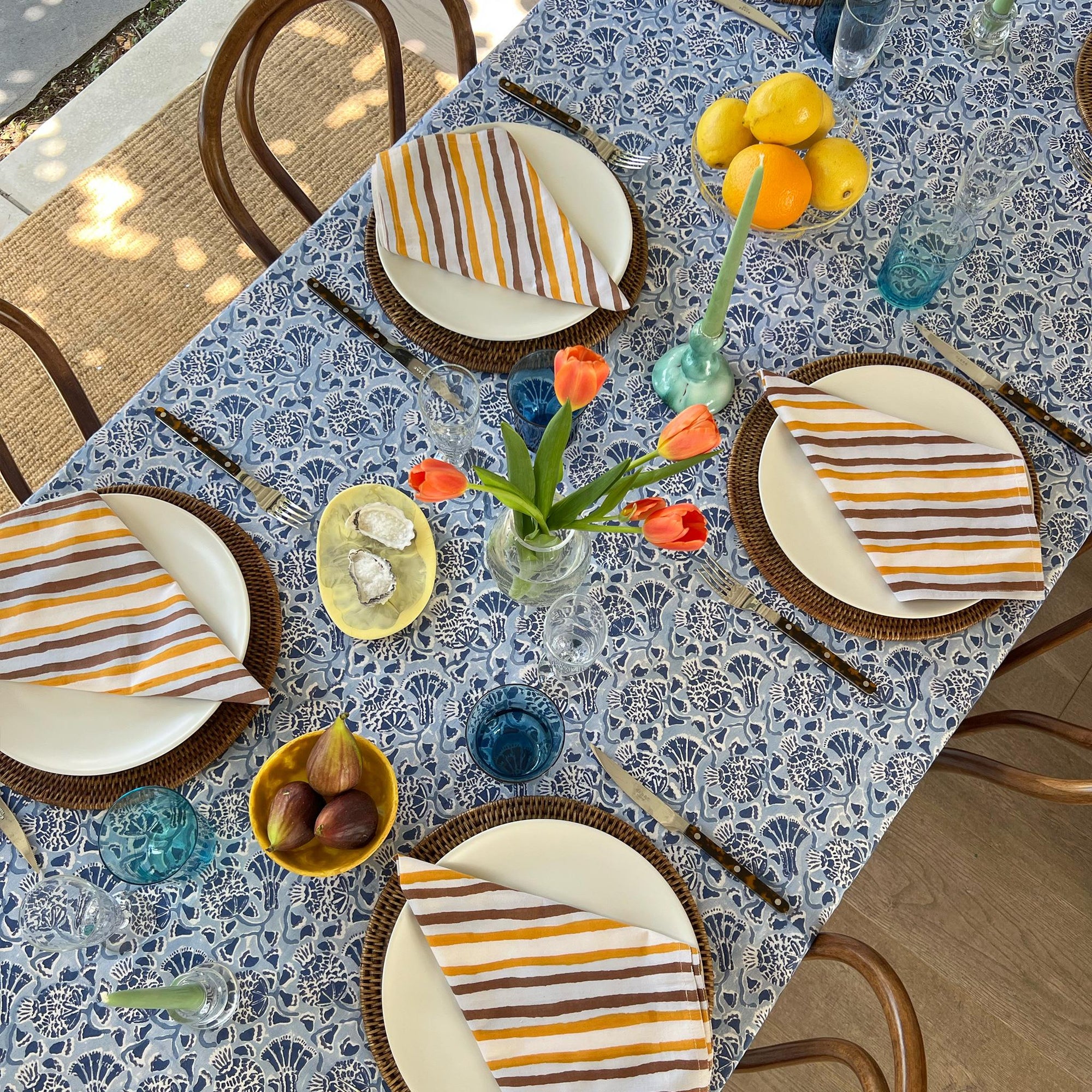 Vishnu Blue Lightweight Cotton Tablecloth